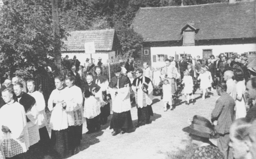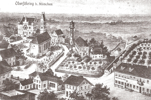 Mitte: Fronleichnamsprozession um 1960 in Oberföhring; Quelle: Karin Bernst, "Oberföhring. Das Dorf und seine Bewohner im 19. Jahrhundert", München 2000.