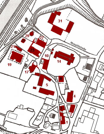 Lageplan nach Karin Bernst, "Oberföhring. Das Dorf und seine Bewohner im 19. Jahrhundert", München 2000.