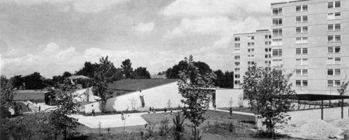 Hortgebäude von Osten gesehen, am Rande der Großwohnsiedlung
