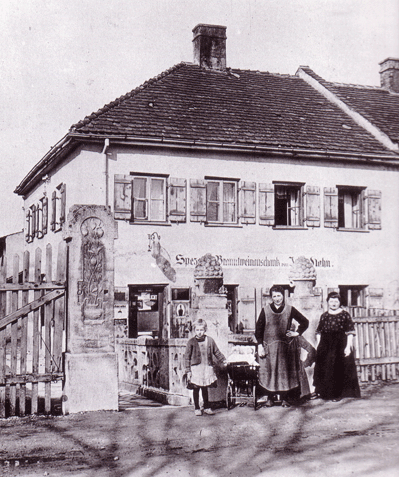 Foto: Oberföhringer Straße 35 (alte Nummerierung Priel 41), um 1920. Gut sichtbar sind hier die drei Jugendstilpfeiler des Eingangsbereiches.