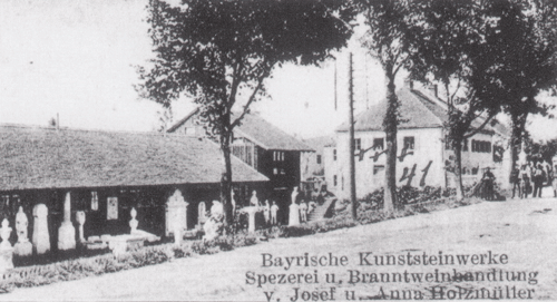 Der Hafner Michael April und seine Ehefrau Wilhelmine waren die ersten Besitzer von Hausnummer Priel 9a, einem Wohnhaus mit Hafner- (Töpfer-)Werkstätte und Brennofen mit angebauten Kamin. Im Jahre 1883 ersteigerte die Bayerische Hypotheken- und Wechselbank um 2000 Mark die Hafnerei und verkaufte diese am 3. August 1883 um 3600 Mark an die Hafnerstochter Maria Hunzinger. Nach einer alten Postkarte befanden sich hier die Bayerischen Kunststeinwerke und die Spezerei- und Branntweinhandlung von Joseph und Anna Holzmiller. Ludwig Wolf, Krämer aus Oberammergau, verlegte im Jahre 1899 sein Geschäft von Hausnummer 9b ins Nebenhaus 9a, und beantragte die dafür benötigte Konzession. So wollte er zusätzlich zur Krämerei noch Schnaps an Stehgäste ausschenken. Dies wurde ihm unter der Bedingung, bis 9 Uhr abends zu schließen, bewilligt. Seine Frau Anna Wolf übernahm 1902 nach seinem Tod den Laden und mit ihr der zukünftige Ehemann Joseph Holzmüller. Das Gesuch von Joseph Holzmüller um den Ausschank von Branntwein wurde aber vorerst abgelehnt, da die Räumlichkeiten nicht den Vorschriften entsprachen. Doch Holzmüller ließ sich nicht abwimmeln und begründete ein weiteres Gesuch: »(...) das Bedürfnis ist im hohen Grade vorhanden (Arbeiter der Ziegeleien, Ofenfabrik, Kunststeinfabrik, starker Verkehr mit Fuhrwerken – Bauern die von Ismaning und Johanneskirchen in die Stadt fahren) (...) und die Leute wollen Morgens um 1/2 5 Uhr statt Kaffee ein Gläschen Branntwein trinken.« Der damalige Besitzer des Anwesens, der Bildhauer Joseph Köpf, war vorerst nicht gewillt, bauliche Veränderungen am Haus vorzunehmen, um den Ladenraum auf 25 Quadratmeter zu vergrößern. Doch solange sich keine Missstände ergeben würden, erhielt Holzmüller dann die Konzession.