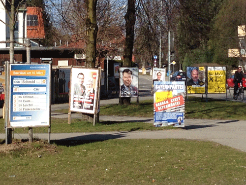 "Unser Dorf soll schöner werden": Kommunalwahlkampf an der Ecke Denninger / Ostpreußenstraße im März 2014 © Stefan Ober 2014