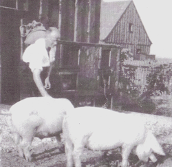Kleintierhaltung in der Siedlung Steinhausen in den 30iger Jahren. Quelle: Buchscan aus der Festschrift "70 Jahre Siedlung München-Steinhausen", München 2002.