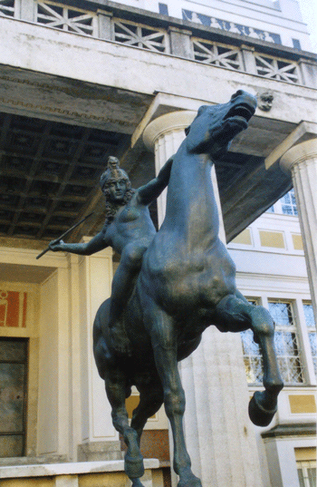 Bronzeskulptur "Reitende Amazone" vor der Stuck-Villa © dietlind pedarnig, 2008.