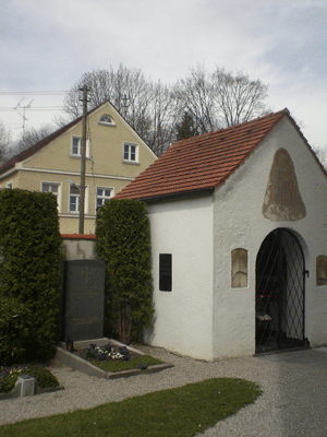 Kapelle neben dem Haupteingang, Giebel ehemalige Schule (Muspillistraße 27)