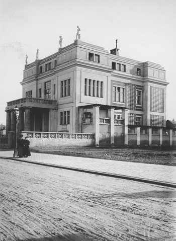 Villa Stuck zur Erbauungszeit, um 1900, noch ohne die Bepflanzung im Eingangsbereich und den Zaun des später bebauten Nachbargrundstücks. Fotografie Georg Pettendorfer. Quelle: Stadtarchiv München, Sign. DE-1992-FS-NL-PETT1-2854
