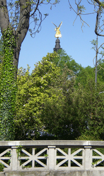 Blick von der Eingangsrampe der Villa Stuck auf den Friedensengel © dietlind pedarnig, 2008.