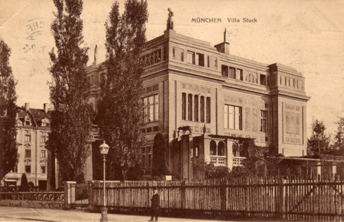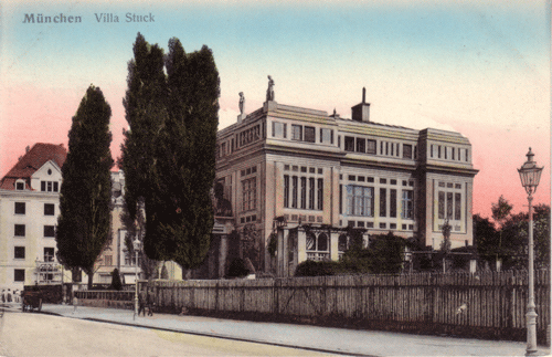 historische Postkarte Villa Stuck, koloriert um 1911 (?).