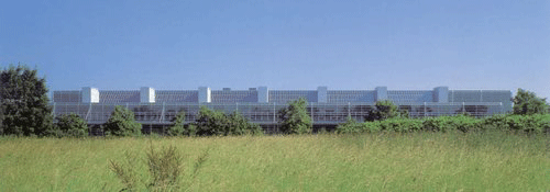 oben: Gesamtansicht von Norden 1985: Die auf den Produktionsablauf ausgerichtete Struktur gab dem Gebäude sein markantes Profil. (mit freundlicher Genehmigung © Ingrid Voth-Amslinger)