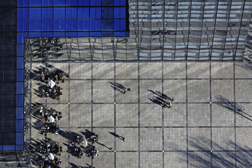 Restaurant vor dem SZ-Hochhaus im Herbst 2008