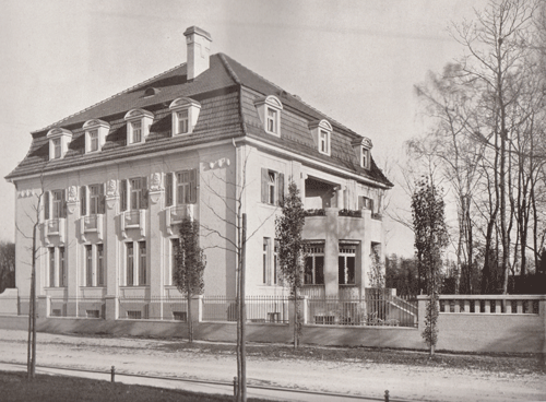 Noch im gleichen Jahr reichte Hofoberbaurat Eugen Drollinger die Pläne für eine Villa bei der Lokalbaukommission München ein. 1909 veröffentlichte die "Architektonische Rundschau" einen Bericht über das Wohnhaus an der Ecke Poschingerstraße und Föhringer Allee (heute Thomas-Mann-Allee). Darin wurde die Raumaufteilung wie folgt beschrieben: "Das Erdgeschoß enthält Wohn-, Speise-, Rauch- und Fremdenzimmer, Diele und Dienerzimmer. Im Obergeschoß sind zwei Schlaf- und Wohnzimmer, Atelier mit Nebenraum, Bad und Garderobe untergebracht. Der Dachraum enthält weitere sechs Zimmer für Dienerschaft und zwei Kammern. An der Gartenseite ist im Erdgeschoß eine Veranda, im Obergeschoß eine Terrasse angebracht. Die Außenseiten sind in Putzarchitektur ausgeführt." Die hochherrschaftlich eingerichteten Räume wiesen sogar den Luxus einer Zentralheizung auf. Insgesamt beliefen sich die Kosten für die stattliche Villa auf 84400 Mark pro Kubikmeter umbauten Raumes auf 22 Mark.