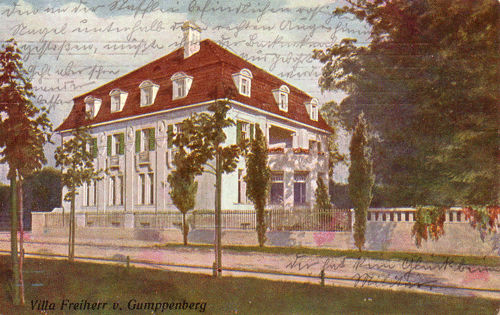 1908 erwarb Freiherr Ludwig von Gumppenberg-Pöttmes-Oberbrennberg, Hofmarschall Herzogs Karl Theodor in Bayern und Gründungsmitglied der Terrain-Aktiengesellschaft-Bogenhausen-Gern 4270 Quadratmeter Grund für 100100 Mark in bester Lage im Bogenhausener Herzogpark. Der Quadratmeterpreis betrug etwa 23,50 Mark.