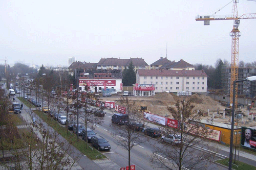 Bebauungsstart an der Freischützstraße 76/78 im Herbst 2008 und im Oktober 2011 © hpt © Verein für Stadtteilkultur im Münchner Nordosten e.V.