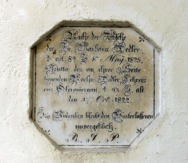 Epitaph für Rochus Dedler und seine Frau Barbara am Friedhof von St. Lorenz. hpt © Verein für Stadtteilkultur im Münchner Nordosten