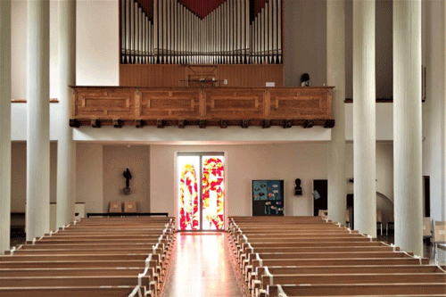 Glasportal an der Westseite von Heilig Blut in Bogenhausen hpt © Verein für Stadtteilkultur im Münchner Nordosten e.V., 2021