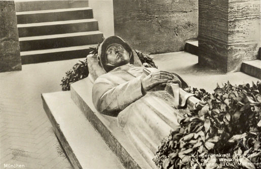 Kriegerdenkmal mit »Totem Soldat« von Breeker im Hofgarten vor dem Armeemuseum; Ansichtskarte
