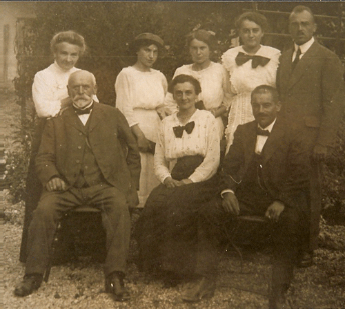 unten: Fritz Meyer (links) mit Hausangestellten vor seinem Haus in der Oberföhringer Straße 234, dem sogenannten Bürgermeister-Haus.