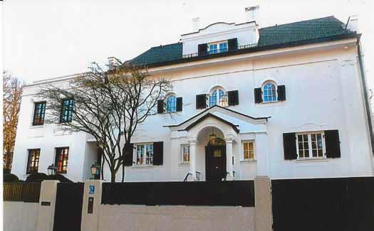 Die Villa wurde 1928 vom berühmten Architekten Gustav Ludwig in der schlechten Materialzeit zwischen den Weltkriegen im »Stil der neuen Sachlichkeit, mit Anklängen an den Heimatstil« dieser Zeit” gebaut. Nachbarvillen entstanden schon um 1910. Besitzer der Villa war eine bekannte jüdische Familie aus Bogenhausen, die von den Nationalsozialisten zum Verkauf an deren angestellte Helferin gezwungen wurde.