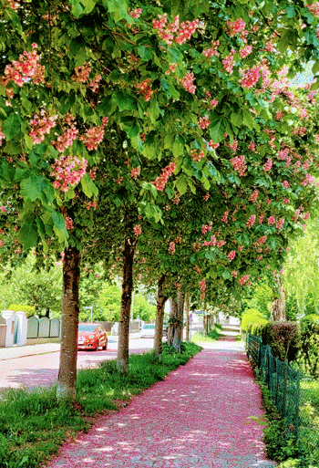 Eine Kreuzung zwischen einheimischer Rosskastanie (Aesculus hippocastanum) und Roter Rosskastanie (Aesculus pavia) aus Nordamerika. Wächst langsamer und bleibt kleiner als A. hippocastanum.