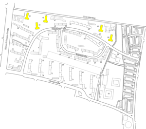 Drei Hochhäuser 12-geschossig: Buschingstraße 41, 65 und 69